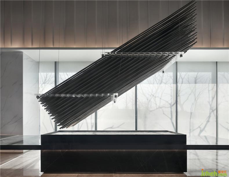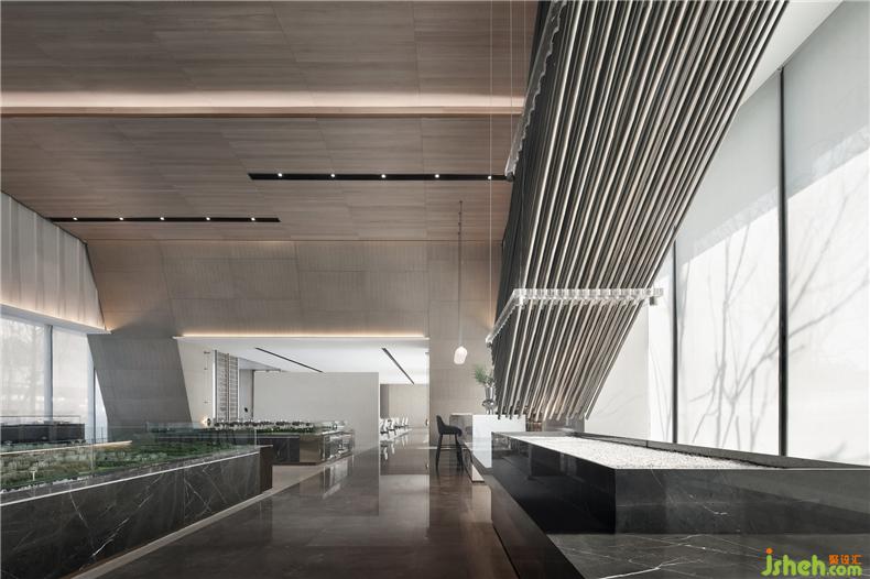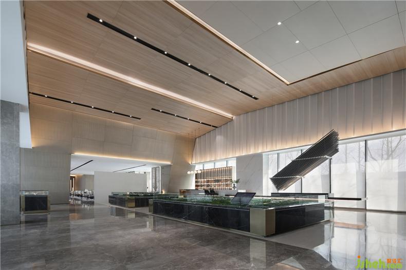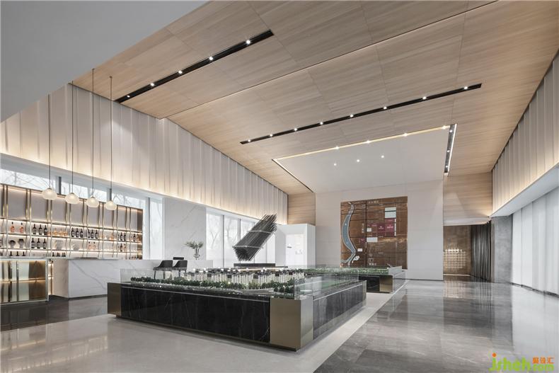 設計以隼卯結構裝置藝術掛件的方式再現了這一傳統(tǒng)技藝的結構之美、營銷中心設計力學之美,展現中建信和地產為城市發(fā)展注入新動力、活力的工匠精神