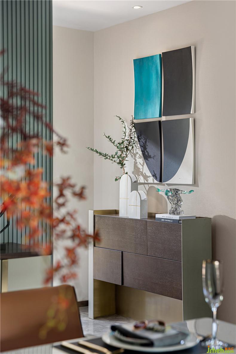 裝飾掛畫與藝術(shù)雕塑點(diǎn)綴空間,使原本平實(shí)的空間增添了趣味性和藝術(shù)范。樣板房設(shè)計(jì)精致優(yōu)雅的沙發(fā)與茶幾,每個(gè)細(xì)節(jié)收口無不體現(xiàn)出對(duì)生活質(zhì)感的追求