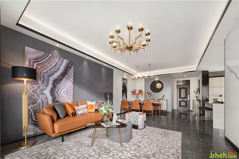 本案風(fēng)格為現(xiàn)代港式風(fēng)格,采用時(shí)尚精簡、樣板房設(shè)計(jì)低調(diào)內(nèi)斂的高級(jí)灰是用于家居裝扮的首選基調(diào)色彩,呈現(xiàn)優(yōu)雅魅力和精致大氣的視覺感官,符合人們對(duì)現(xiàn)代生活的審美需求。同理,作為潮流都市代表色之一的暖橙,伊派設(shè)計(jì)在居家設(shè)計(jì)中的運(yùn)用中,讓空間張揚(yáng)不浮夸、經(jīng)典且時(shí)尚,成為永恒不變的奢侈品味。