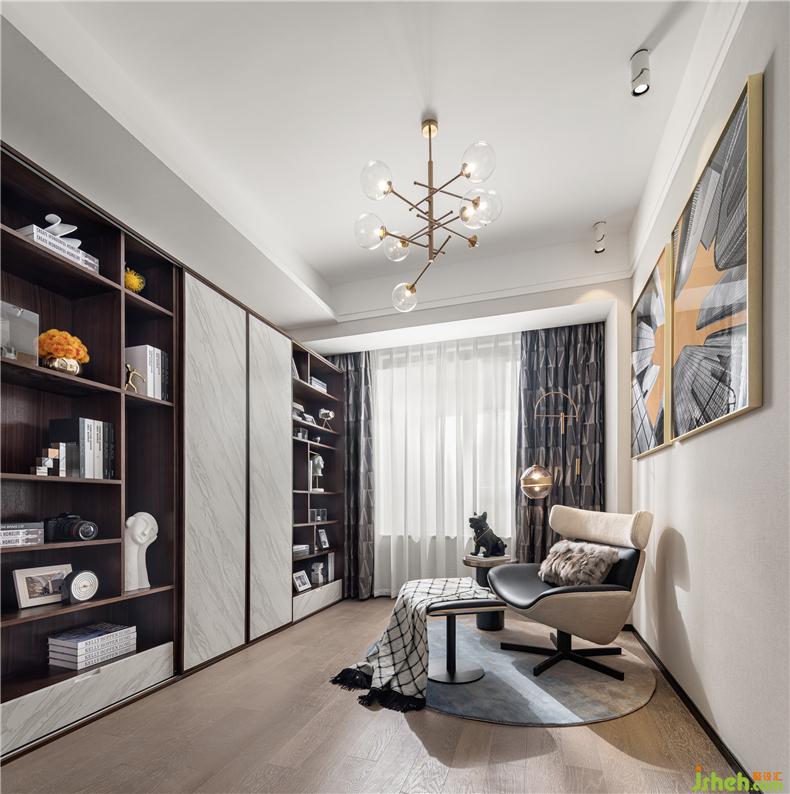 書(shū)房在簡(jiǎn)潔和傳神中找到精妙平衡點(diǎn),無(wú)論是溫潤(rùn)的皮椅套裝樣板房設(shè)計(jì),還是書(shū)架中點(diǎn)睛的藝術(shù)品,都鋪陳出迷人時(shí)尚質(zhì)感,達(dá)成物質(zhì)品味與精神追求的合二為一
