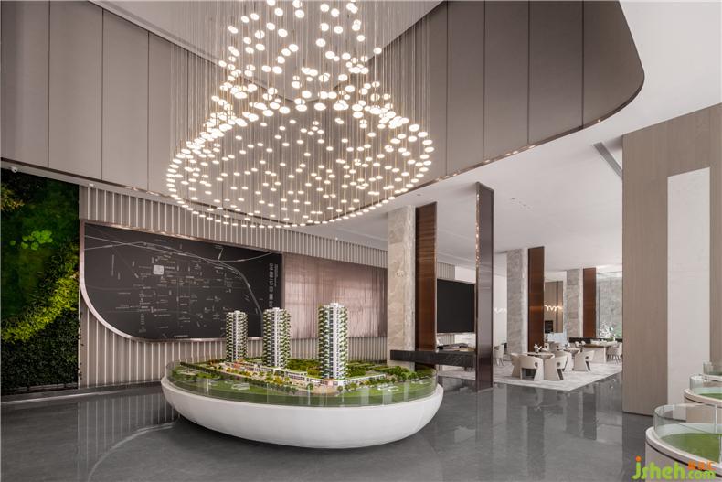 接待前廳采用開敞式空間,保留原有建筑特色的基礎(chǔ)上,融合現(xiàn)代、科技的居住理念,開創(chuàng)一種新的極具品味的售樓形式,禮獻一個高品質(zhì)和創(chuàng)新性的人類宜居新起點。
