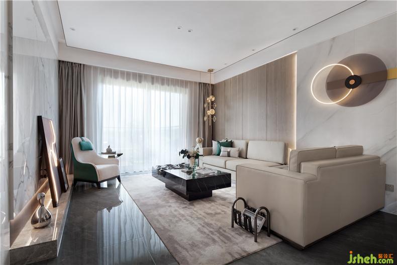 設計用精妙的手法,借助家具、裝飾的曲線與色彩,盡顯空間的優(yōu)雅魅力與生活的時尚趣味。舒適質(zhì)感的白色沙發(fā)與單椅,不經(jīng)意間點綴少量金屬與藝術品。獨有的光澤巧妙地穿插融合,使空間的內(nèi)涵與品質(zhì)得到豐富。
