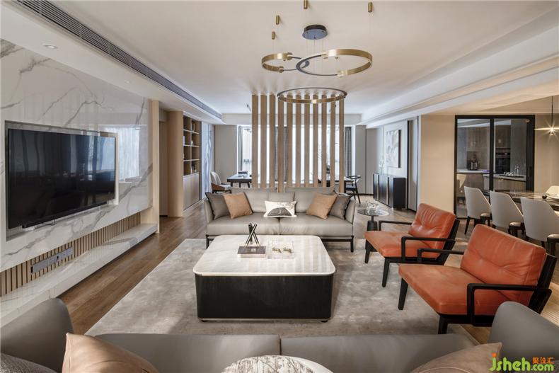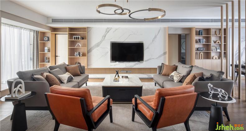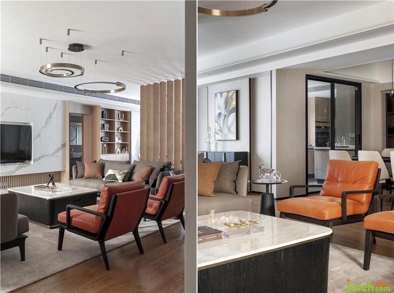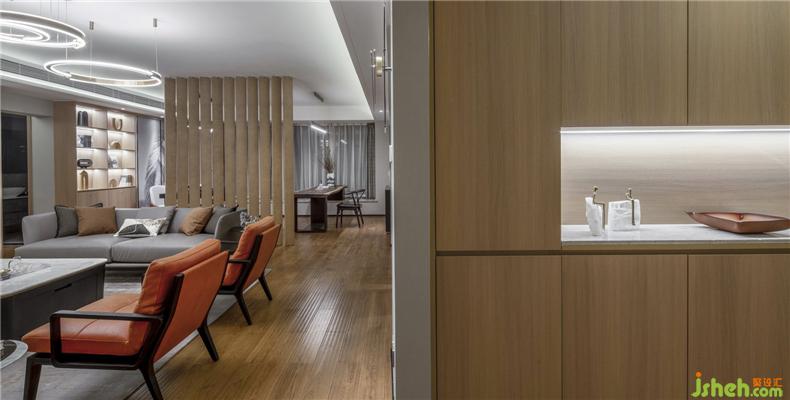 本案的整體風(fēng)格選擇了自然簡約的風(fēng)格表達(dá),私宅定制設(shè)計(jì)師注重對空間格局的重塑,在設(shè)計(jì)表達(dá)上則用最干凈利落的手法,沒有多余的裝飾,努力呈現(xiàn)生活最簡單質(zhì)樸的狀態(tài)。色彩上用清爽的高級灰裝飾,軟裝陳設(shè)用暖橙點(diǎn)綴,點(diǎn)亮了空間色彩,簡潔而不單調(diào)。
