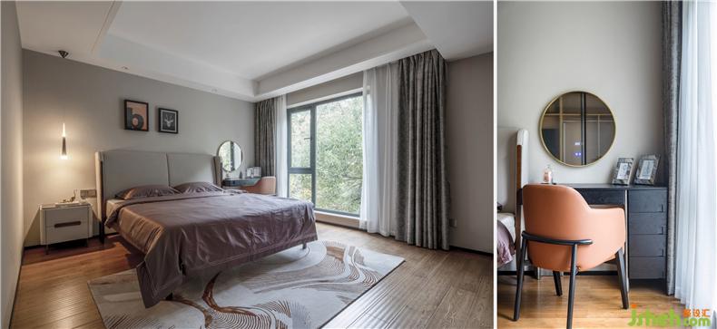 柔和的燈光,素雅的空間,簡(jiǎn)單的梳妝臺(tái),女主人的臥室雖簡(jiǎn)約卻充盈浪漫的氣息