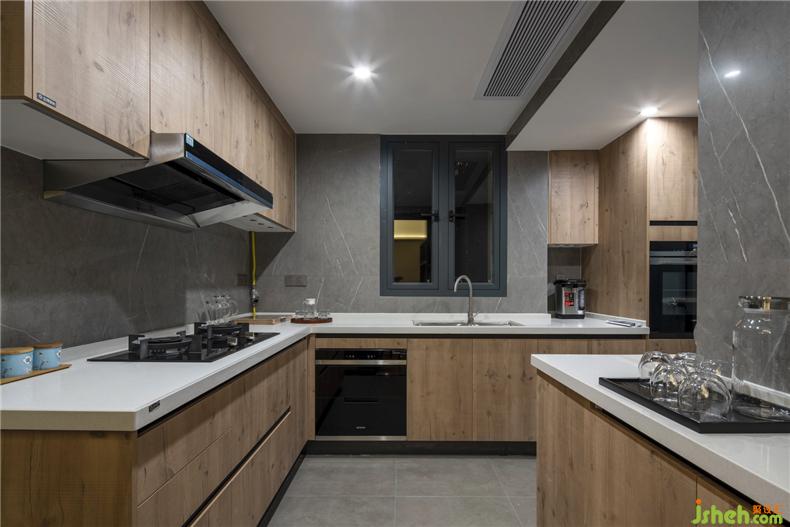 私宅定制設(shè)計(jì)超大空間廚房,操作臺(tái)面開(kāi)闊,功能分區(qū)明顯,廚衛(wèi)收納空間豐富,盡享烹飪樂(lè)趣
