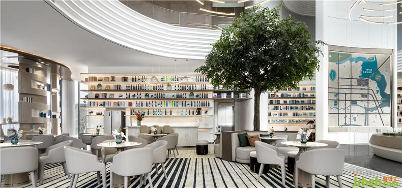 在書吧與洽談區(qū)之間,還有直接與洽談區(qū)相連的水吧,使得空間感更為豐富,前來看房人們在此處空間能盡享文化與休閑的意趣,讓整個營銷中心更像是一處休閑娛樂之所,集生活與品味于一體。
