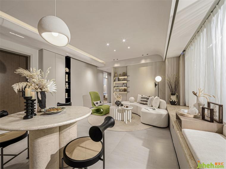 優(yōu)雅靜謐的米白色系營(yíng)造出歲月靜好,選擇柔美曲線的沙發(fā),樣板房設(shè)計(jì)讓空間更富活力,是區(qū)域的開(kāi)闊得到舒展;自然棉麻、自然光線、自然花藝,人也可以如自然之物一般閑暇自由;回歸本真之旅。