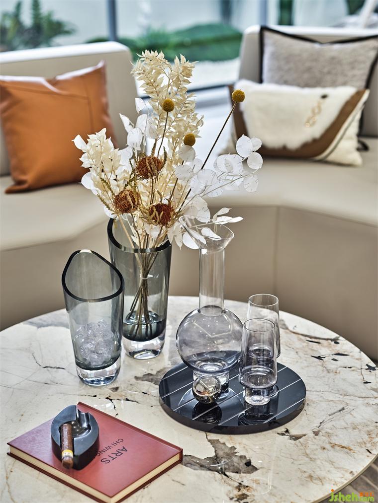 在客廳設(shè)置雙廳功能,包含社交與休閑屬性,樣板房設(shè)計簡約的設(shè)計衍生出多重空間,部分軟裝采用傳統(tǒng)的純手工工藝,個性化的時尚設(shè)計及苛刻的甄選程序,確保了陳設(shè)飾品的不凡品質(zhì)。