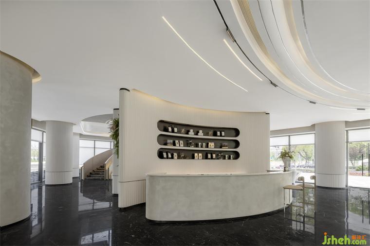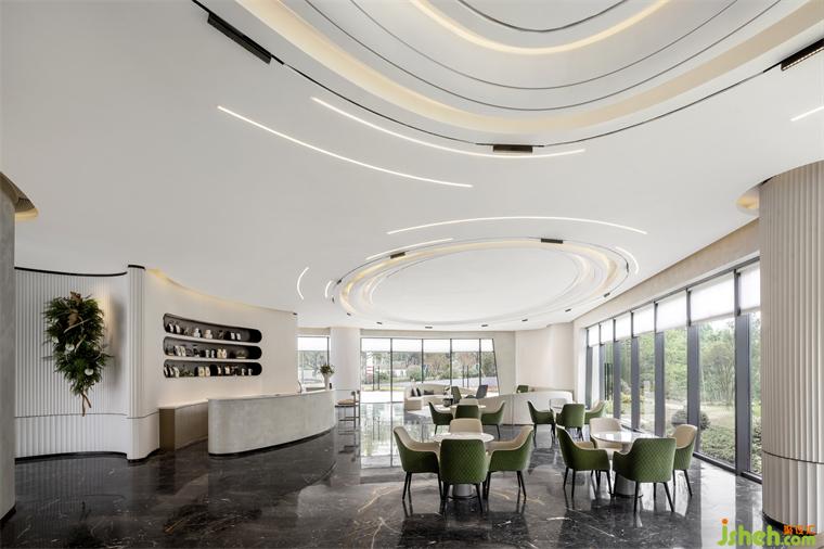 引景入室,模擬像美學(xué)館一樣的空間,營(yíng)造現(xiàn)代都會(huì)的寧?kù)o世界。售樓處設(shè)計(jì)以圓與弧線為主要元素進(jìn)行設(shè)計(jì)的洽談區(qū),白色是空間色調(diào)的主旋律,局部點(diǎn)綴清新自然的綠,空間淡雅柔美,貼近自然。
