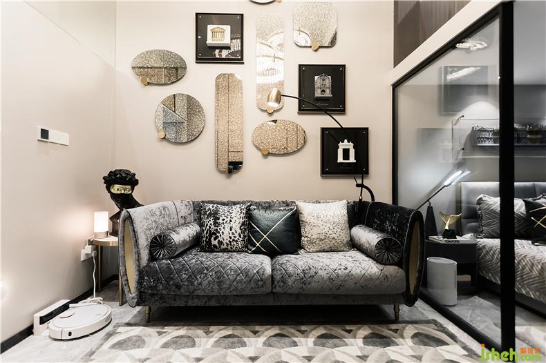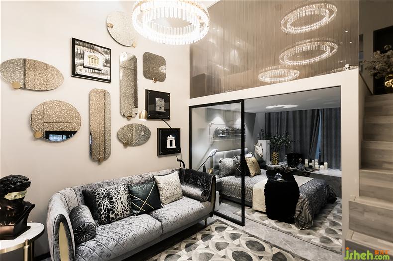 銀鏡與畫(huà)框升華了整個(gè)空間樣板房設(shè)計(jì)