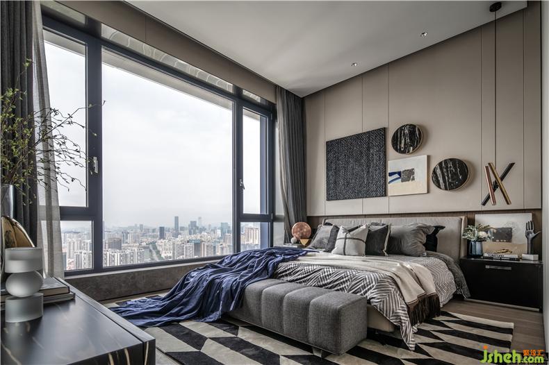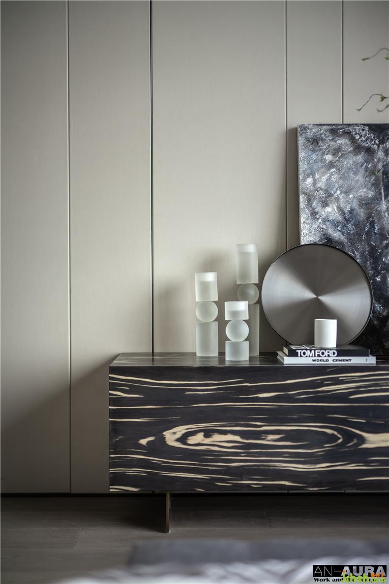 引入“圓”的概念,借以平衡生活中的“棱角”。再搭配意大利品牌Minotti床及Flou的床頭柜,不同灰度值的過度演繹,黑白灰無色系的完美交織,配合灰藍(lán)色的醒目點綴,能夠通過時尚感官、凝聚源源不斷的清新活力,一種兼?zhèn)鋾r尚而又充滿韻味感的現(xiàn)代生活寫照由此而生。