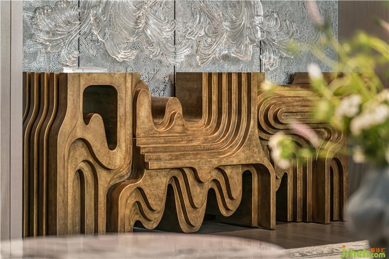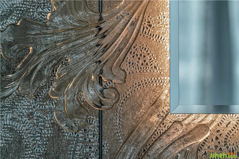 藝術(shù)風格的玻璃鏡是客廳墻壁的焦點,來自意大利玻璃家具品牌GLAS ITALIA,它將簡約與現(xiàn)代的奢華融為一體。在洛可可玻璃雕刻的邊緣,手工制作,復雜而精致,展現(xiàn)了意大利玻璃工藝的最高水平,與簡單透明的鏡子組合,一種獨特的藝術(shù)時尚存在。LED照明系統(tǒng)也可以用來增強和提高框架。