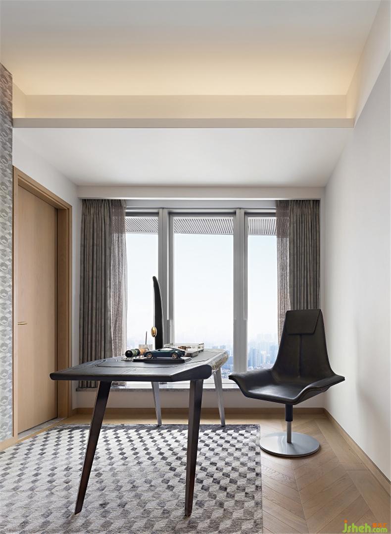 書房延續(xù)整體設(shè)計(jì)理念,以動(dòng)感的流線型書桌與辦公椅定下空間基調(diào),結(jié)合模擬光的前沿藝術(shù)裝飾畫和Qlocktwo創(chuàng)意時(shí)鐘,科技感與未來感并存。