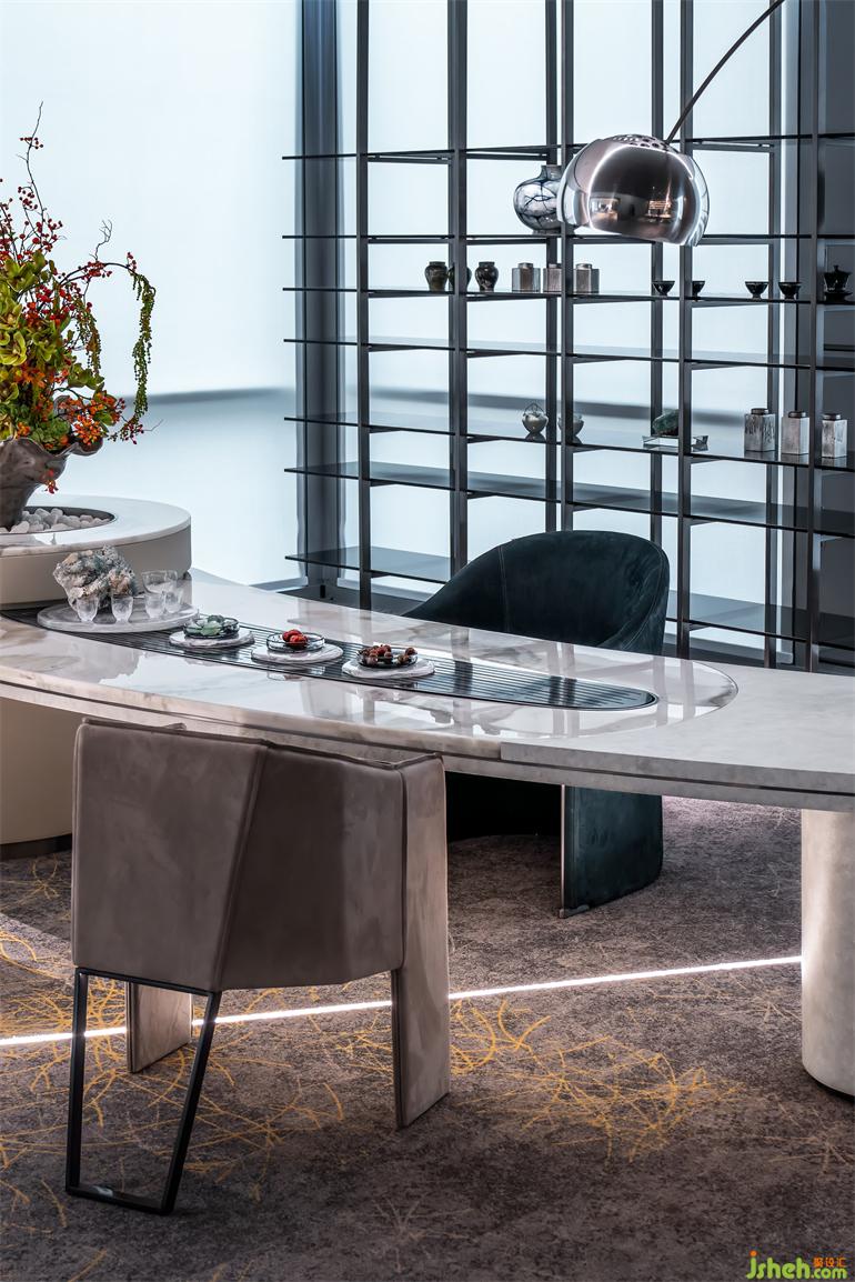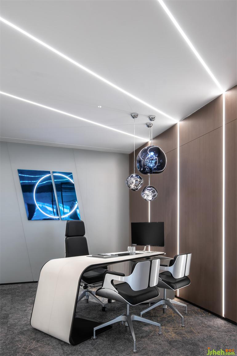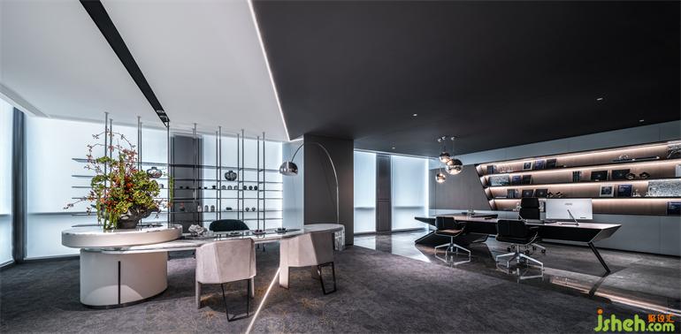 幾何的面,線條的線,在空間中構(gòu)成黑白交錯(cuò)對比,提升整體空間層次感的同時(shí),室內(nèi)設(shè)計(jì)師也將空間的功能場域進(jìn)行了劃分,讓工作與生活完美融合。