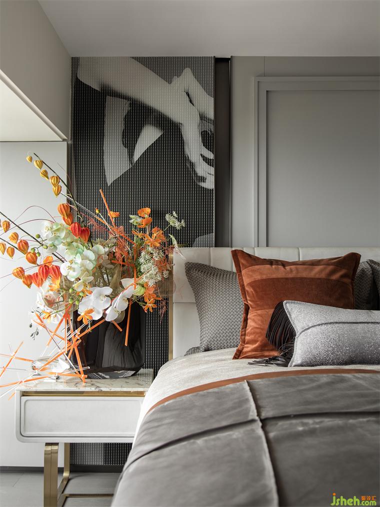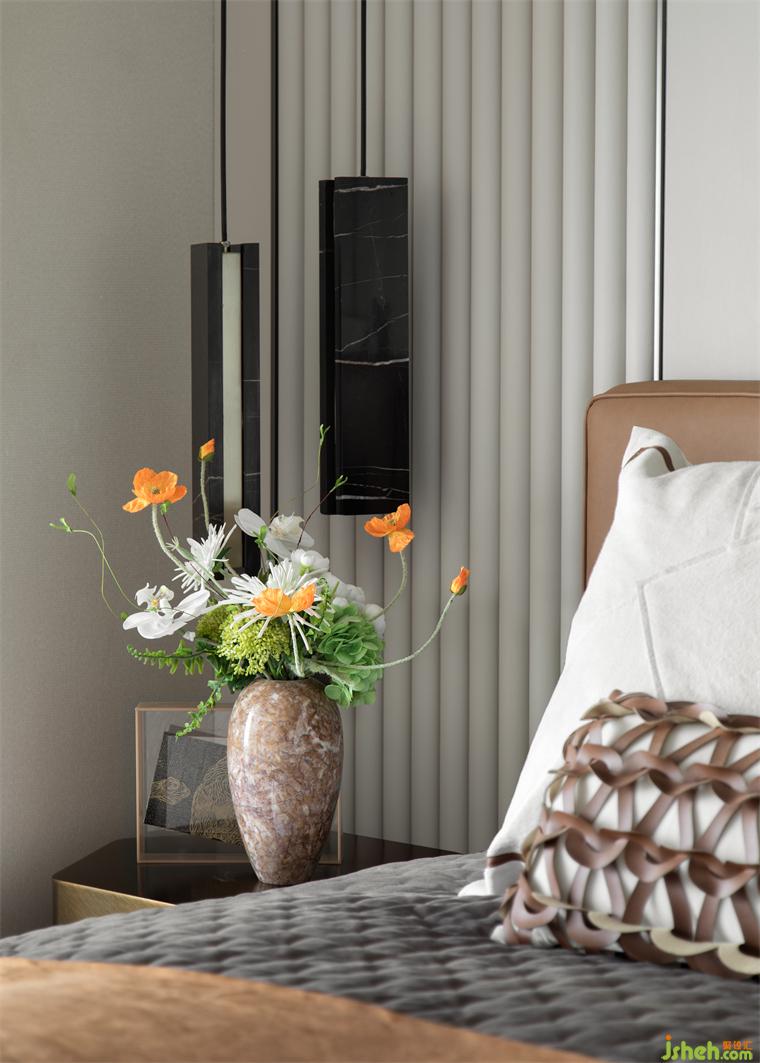 花藝、陶瓷、布藝、木材等材質(zhì)的有機組合,搭配個性的裝飾畫,樣板房設計匠心獨具的細節(jié)美學處處彰顯著設計的巧思,低調(diào)奢華的氛圍充盈于空間的每個角落。