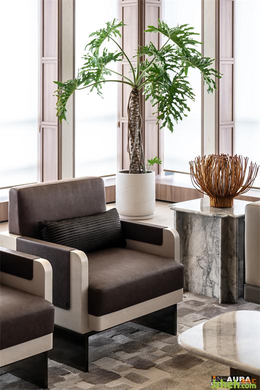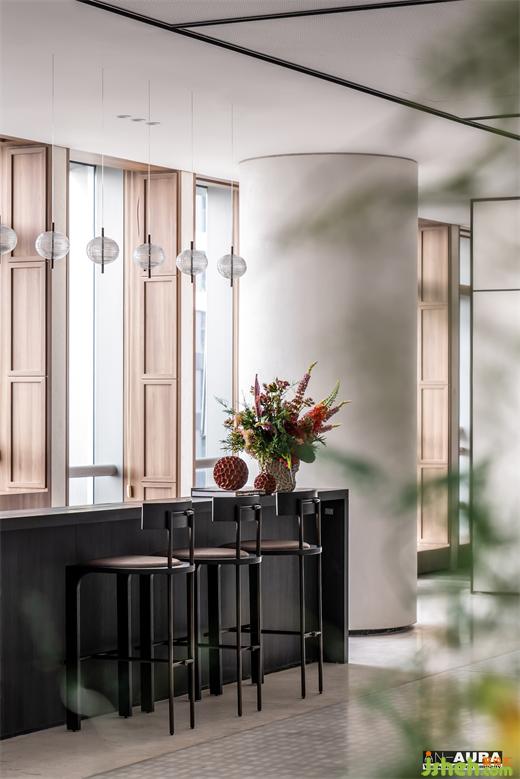 座椅形態(tài)選用棱角分明,圍造休閑安寧的洽談氛圍,流線形制貫穿水吧區(qū)一路延展,裝修公司引導(dǎo)訪客隨境心轉(zhuǎn)的體驗,在一步一景中產(chǎn)生不同維度的感受。