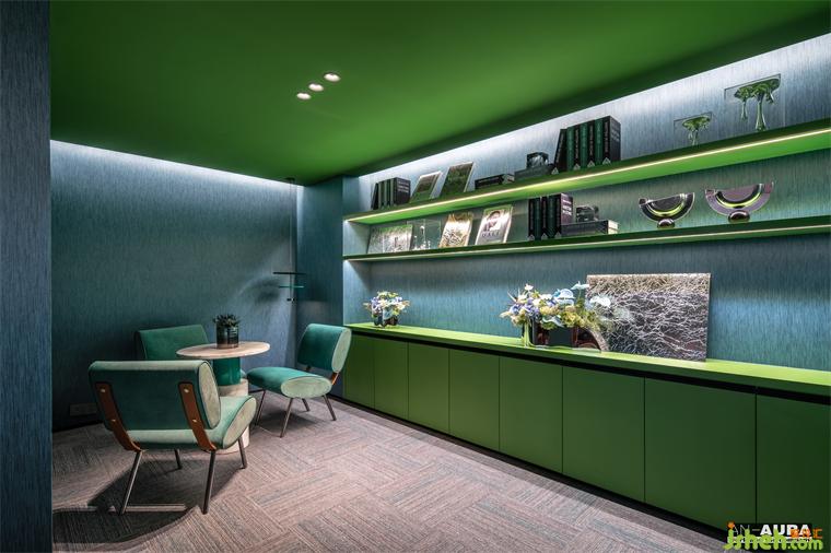頭腦風(fēng)暴需要愜意的放松的場(chǎng)域,綠色的清新最能釋放人的壓力,仿若置身大自然之中,創(chuàng)意應(yīng)運(yùn)而生。人在室內(nèi)的流動(dòng)、停歇、行走,將空間與人的交互相鏈接蔓延,緩緩流淌。