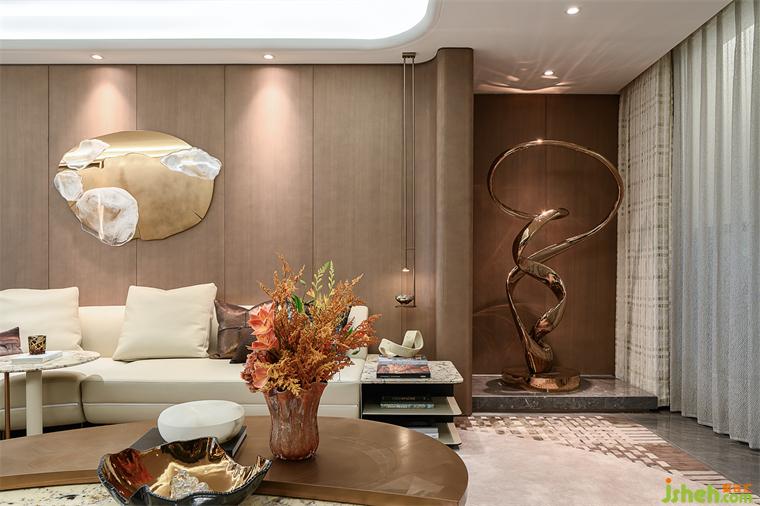 旋轉的雕塑如同時間的渦流,將空間內的一切靜態(tài)元素捲入無形的流動中,樣板房設計訴説著不可言傳的深邃意蘊。在這一方天地中,激盪出難以捕捉的文化脈動。柔和的光線與暗示性的曲線相互輝映,編織出一幅視覺盛宴。