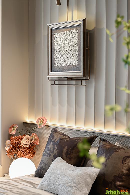 主臥宛如一首詩歌,柔和的燈光如同月光般輕撫牆麵,勾勒出精緻的線條,仿佛是在無聲中描繪著歲月的流轉(zhuǎn)。床頭的與窗簾的質(zhì)感相互呼應(yīng),呈現(xiàn)出一種溫馨又莊重的氣息,將現(xiàn)代與古典巧妙地結(jié)合一起。