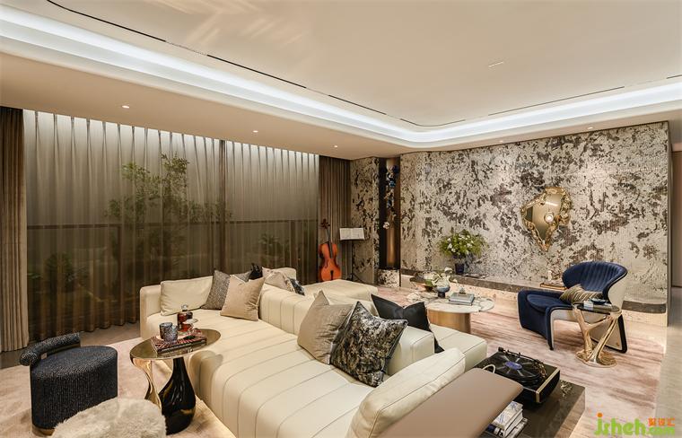 空間的佈局巧妙而富有層次感,沙髮的曲線如流水般柔和,將整個區(qū)域串聯(lián)成一體,在靜謐中展現(xiàn)出深邃。光影的交錯如同生命的脈搏,爲(wèi)空間注入了靈動。