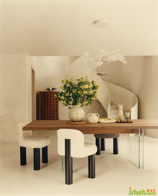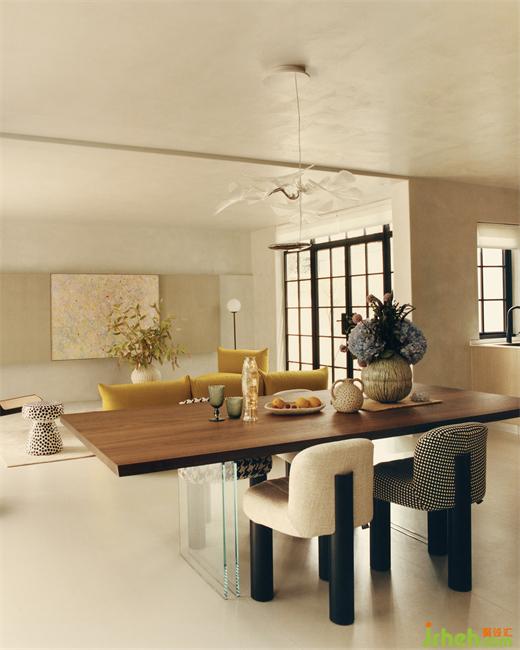 度合一衡在空間上并沒(méi)有進(jìn)行過(guò)度的裝飾手法,沒(méi)有做過(guò)多的硬裝材質(zhì)堆砌,只是被大面積暖白自然肌理感的涂料包裹,讓空間有了一種經(jīng)得住時(shí)間的考驗(yàn)的雋永。沒(méi)有以任何一種標(biāo)簽化的設(shè)計(jì)風(fēng)格為起點(diǎn),而是挖掘出獨(dú)屬于業(yè)主個(gè)性的第二居所的精神所在。相對(duì)于業(yè)主上一套住宅中克制與嚴(yán)謹(jǐn),在這里,設(shè)計(jì)師試圖幫他們卸下規(guī)訓(xùn)與責(zé)任外,回歸那個(gè)內(nèi)心熱愛(ài)藝術(shù)與生活的自己。