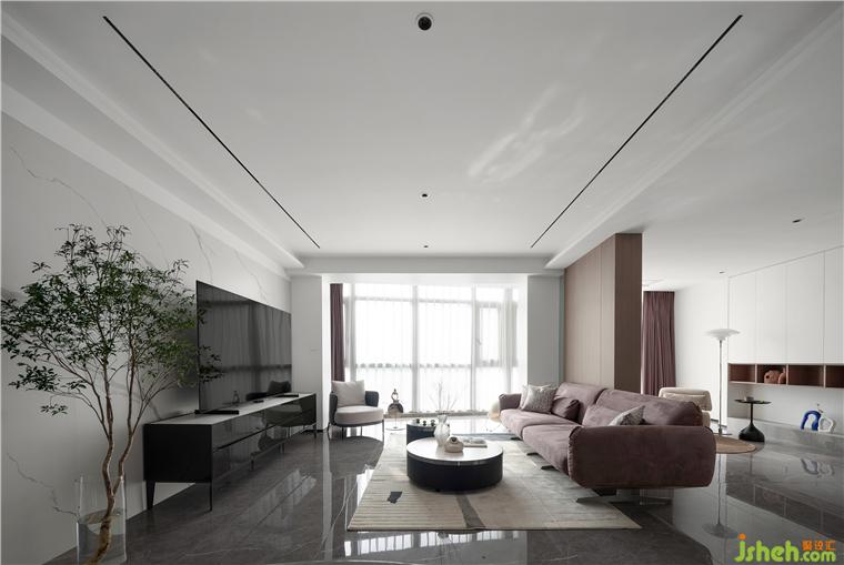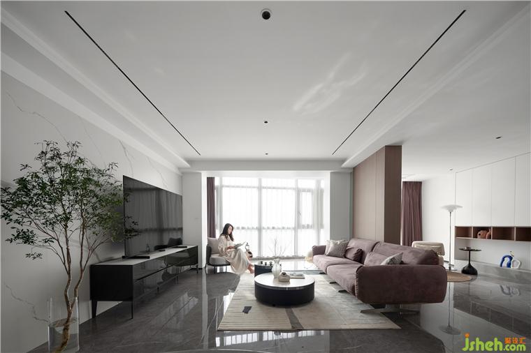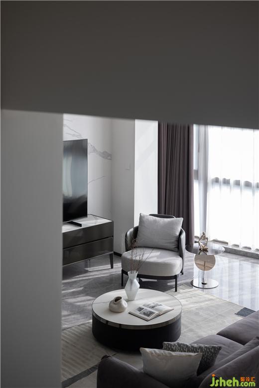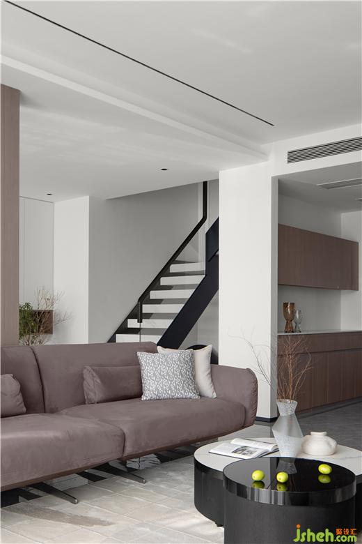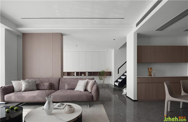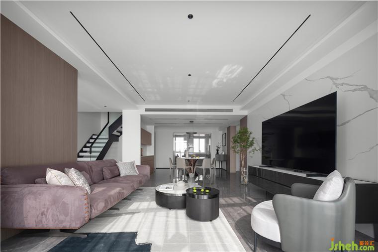 客廳最大的亮點是長8m的大落地窗,復式裝修設計采光極好四季變換的信號總是能第一時間傳達到這里。家具擺放落落大方、有趣、有品位 , 點到即止,從而浪漫、溫馨且不失時尚感。極盡克制地使用點光源與綠植點綴其間,以設計語言的多樣性展現(xiàn)出業(yè)主獨特的生活美學。