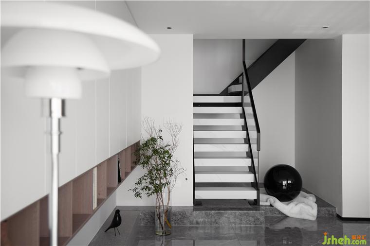 空間并非是固定、局限、封閉的,更多時候各空間可以相互交流,復式裝修設計打通原書房與客廳間的隔墻,成為共生的親密關系,將空間的潛能完全釋放。柔性的空間隔斷給予了空間更多的互動與呼吸,任視線與空氣自由地流動。