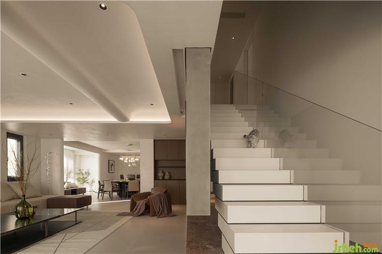 光穿過純凈的玻璃燈帶開啟,整個空間瞬間點亮