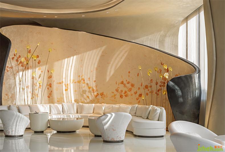 昆明作為一個(gè)四季如春的花城,室內(nèi)設(shè)計(jì)師本案無論從建筑、景觀、還是室內(nèi),都希望可以與這座城市的性格氣質(zhì)共融。因此,我們把對繁花的想象融入空間布局與規(guī)劃,用一片片花瓣的形態(tài)藝術(shù)性的劃分區(qū)域,傳達(dá)出我們對于浪漫與詩意的理解。