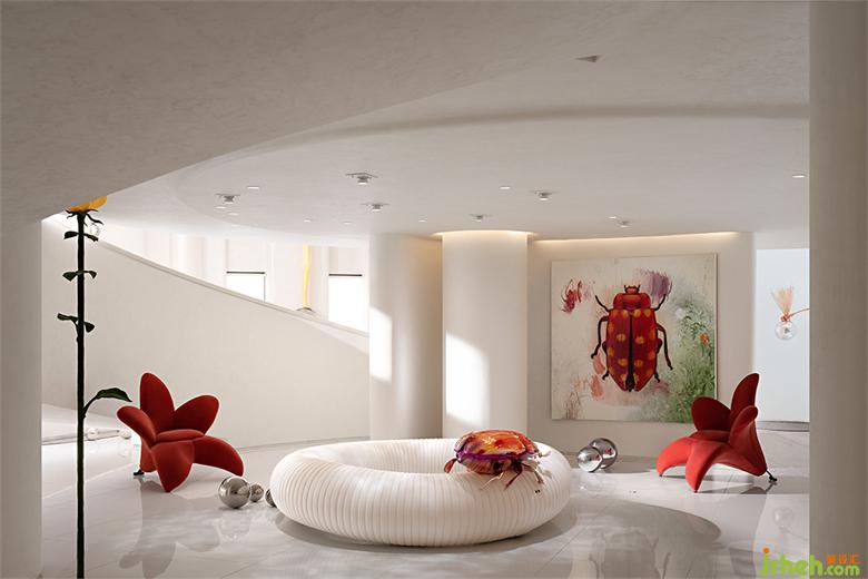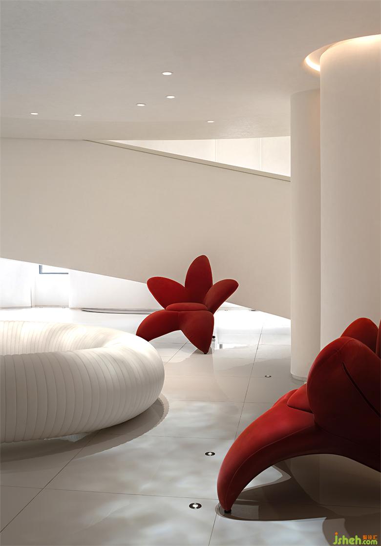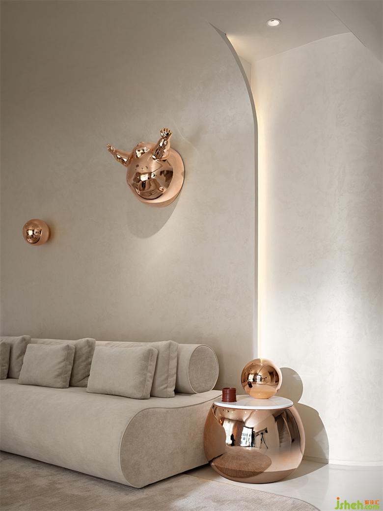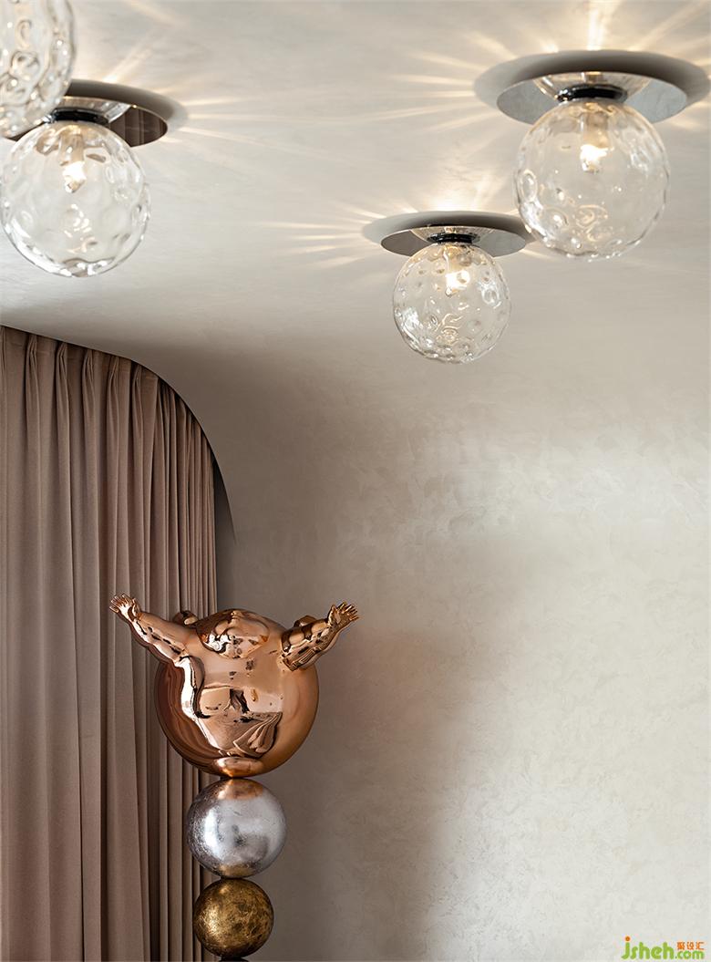 圍繞著藝術(shù)館游走一圈后,來(lái)到了藝術(shù)館的夾層,南寧別墅裝飾整個(gè)館內(nèi)的動(dòng)線(xiàn)形成了圓弧般的串聯(lián),讓兩個(gè)上下分層的空間猶如融為一體。