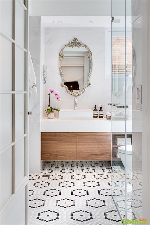 5. 浴室采用黑白馬賽克,拼湊成六角磚的地面造型,更是意味著優(yōu)雅從容的法式態(tài)度。浴室采用黑白馬賽克,家裝設(shè)計(jì)拼湊成六角磚的地面造型,更是意味著優(yōu)雅從容的法式態(tài)度。