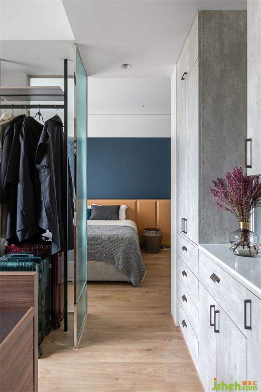 客浴大膽使用珊瑚橘墻面做跳色,營造時尚又明亮的衛(wèi)生空間。次臥采清爽的北歐簡約風格,讓留此過夜的客人感受到男主人的熱情待客之道。