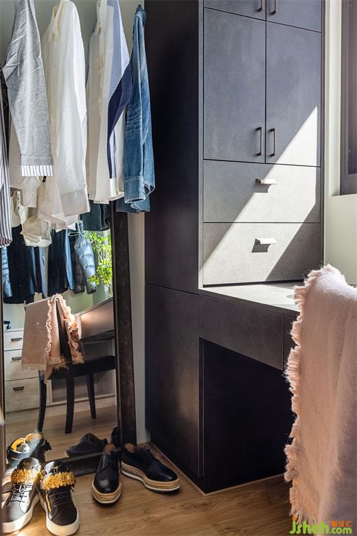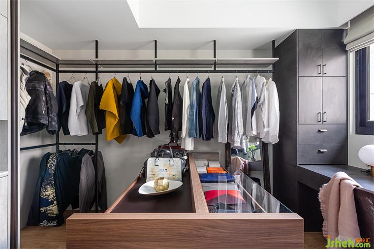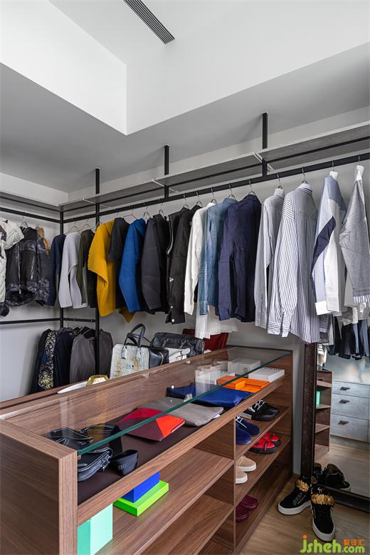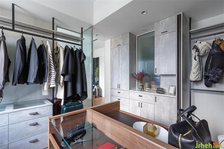 來到主臥,此處為另一個設(shè)計重點。深藍色的主題墻,搭配玫瑰金吊燈,豪宅設(shè)計營造溫暖又神秘的私人休憩空間。男主人擁有眾多的時尚單品以及收藏品,收納于光線充足的更衣室,彷彿置身于精品館。