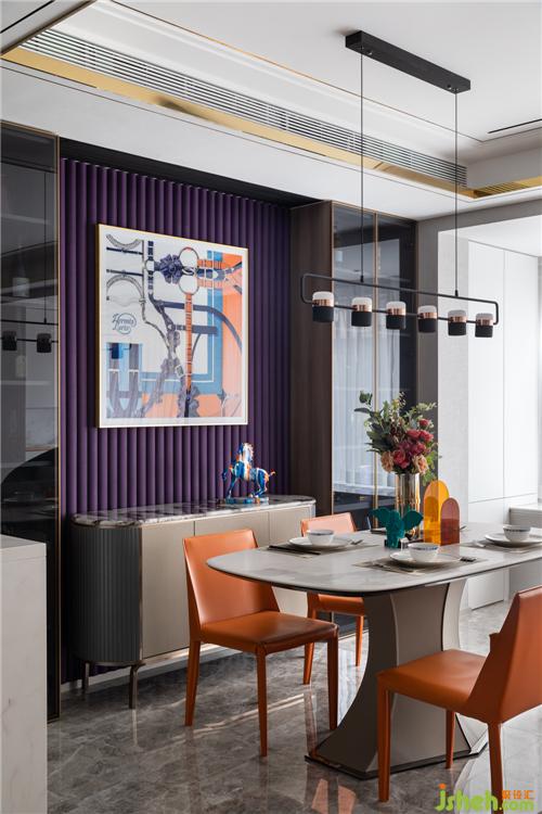 紫色與香檳色的融合與碰撞,布的柔性和金屬的鏡面完美演繹,讓原本張揚的金屬質(zhì)感擁有了優(yōu)雅的一面,就像我們的生活,需要出彩也敢于浪漫和平淡。