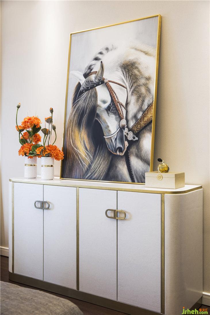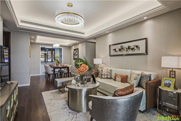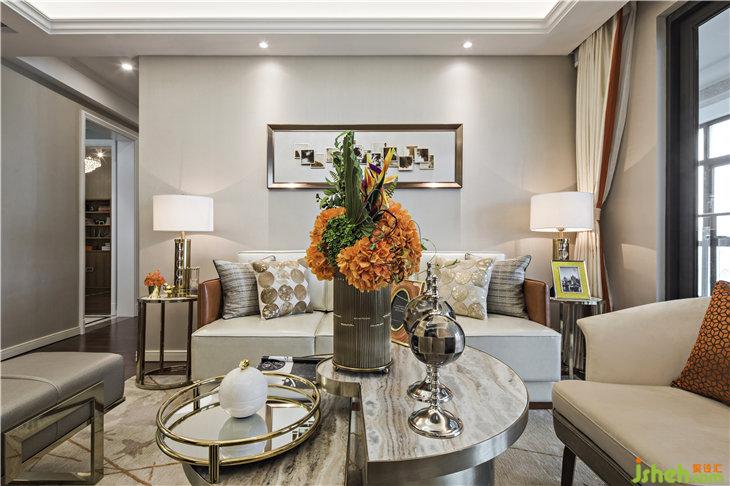 設(shè)計師表示:“將自然的色彩搭配法則運用于空間,就可以賦予空間以生命。”橘色波斯毛莨優(yōu)雅大方,還不失親和,將之抽象化表達以后,給予了家別樣的溫情。而金屬的元素、帶鏡面光感的材料、簡約時尚的圓形茶幾、優(yōu)雅輕奢的水晶吊燈,無不在靜靜訴說著港式的優(yōu)雅風(fēng)情。