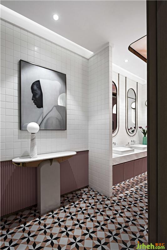 洗手間的折線運用達(dá)至高潮,直線、曲線、幾何體...各種形態(tài)的線條共處一室,以線、面、體的綜合形式進(jìn)行空間形態(tài)的表達(dá),從平面到立體自然轉(zhuǎn)化。大面積的純色色塊制造一種強烈的心理震撼力,營造張揚有力、現(xiàn)代時尚的空間意境。