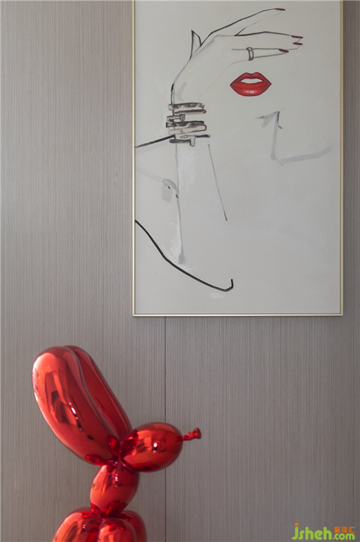 火紅的抽象雕塑裝置,予人強(qiáng)烈的視覺沖力,令人過(guò)目難忘。烈焰般的色彩與裝飾畫中嬌艷的紅唇相映成趣,呈現(xiàn)獨(dú)特而極具張力的美麗風(fēng)范。