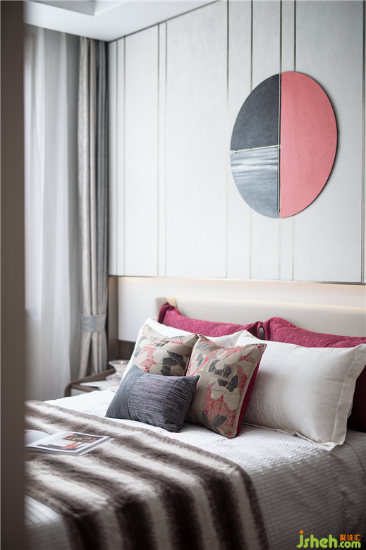 主臥室中紅色依然是最閃耀的存在,濃淡不一的紅色與質(zhì)樸的木形成涇渭分明的對(duì)比,在熱情與內(nèi)斂之間,極具曲線美的蜿蜒吊燈,以極致的優(yōu)雅,中和了空間的氣質(zhì),色彩濃度及材質(zhì)的調(diào)制,一切都恰到好處。