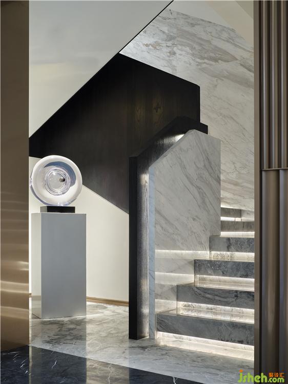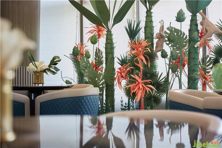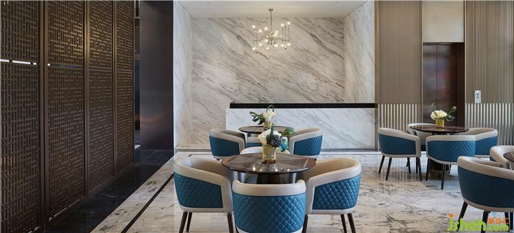 陽光與水徜徉共舞!滿盈盈的水面融化在馥郁的艷陽里,搖曳生姿,幾縷微醺的風(fēng)剛好吹進來,粼粼的水波將水面分隔成千變?nèi)f化的動態(tài)幾何圖形,設(shè)計師取其形,以更為立體的幾何構(gòu)圖,運用至空間設(shè)計,跳脫地描述了這Art Deco式的大都會藝術(shù)歲月。