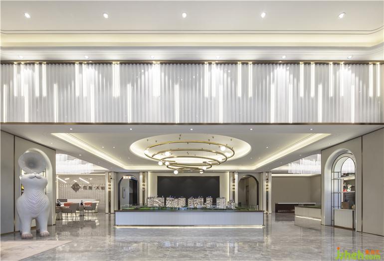 紅星·西寧天鉑營銷中心設(shè)計整體風(fēng)格為現(xiàn)代風(fēng)格,大面積運用溫潤的色彩搭配金屬線條,打造出現(xiàn)代、輕奢、精致的空間感;材質(zhì)色彩以淺色為主,使用實色漆,墻布與金屬配合,呈現(xiàn)精致優(yōu)雅的生活品味;空間結(jié)構(gòu)整體開放通透,采光優(yōu)越,宛如一個徐徐打開的童話世界。