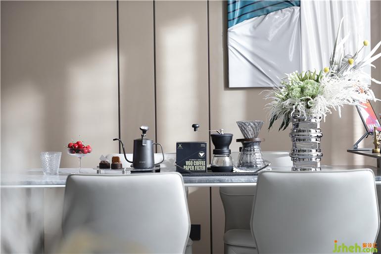 設(shè)計師從顏色的搭配和材質(zhì)的搭配細(xì)節(jié)處還原了住戶的高品質(zhì)生活,愛攝影、泡咖啡、烘培美食、裝飾藝術(shù),和孩子一起玩積木拼搭游戲,在這里定格理想生活。