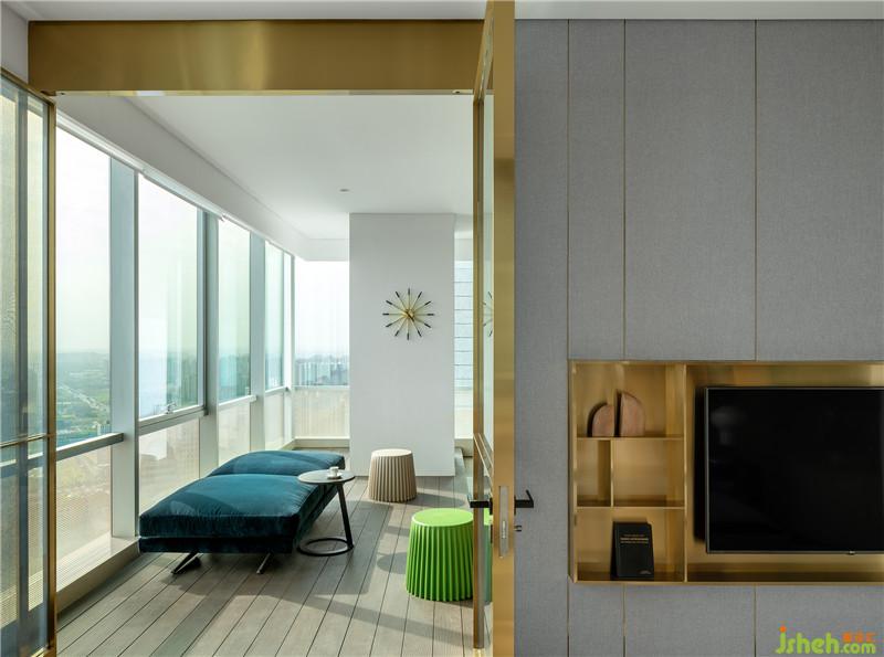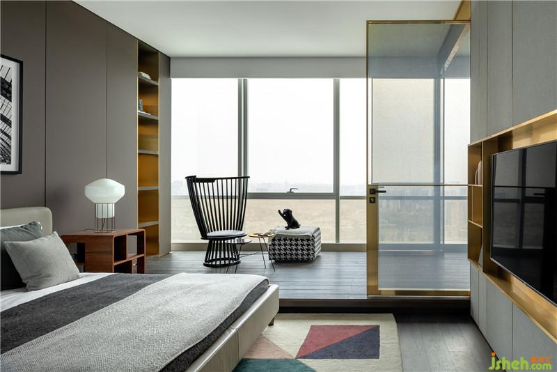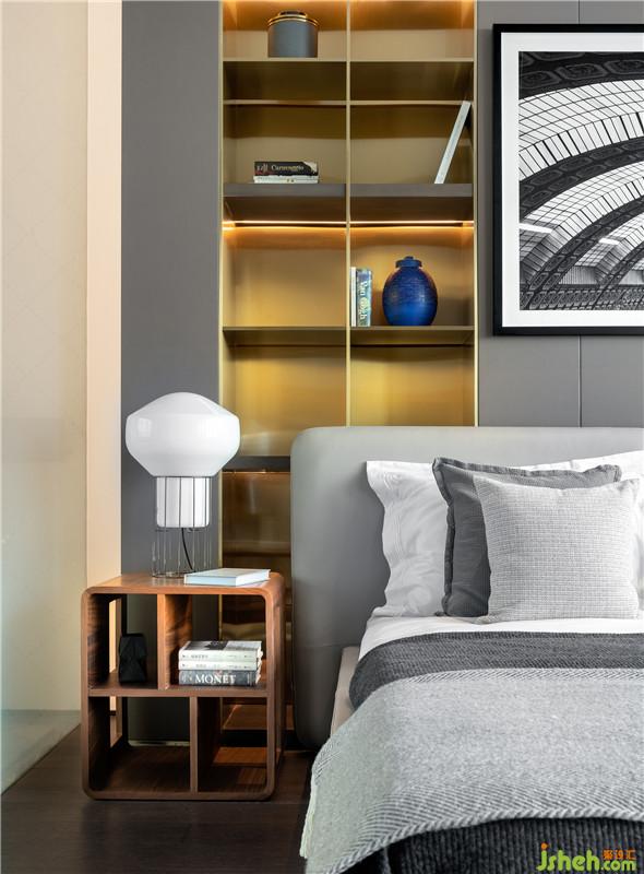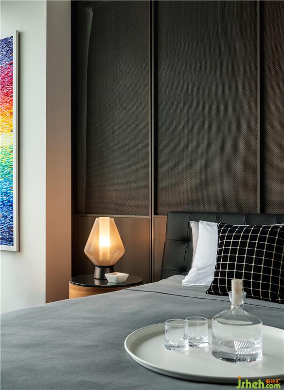 為營造極致的居住體驗,設計師頗費心思地引入生活儀式感。進入主臥套間即是開放式衣帽間相迎。主臥背景墻采用特殊定制的金屬網,以其深色調金屬塑造沉穩(wěn)、質樸的氣息。內部與衣帽間、衛(wèi)浴的界限也得以弱化,賦予居者卓闊的空間享受。