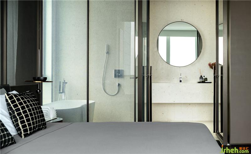 主臥衛(wèi)浴在大片米色鋪呈下,充分釋放出極簡的美感。圓潤的鏡面,更是在體塊棱角中實現了融合與均衡。