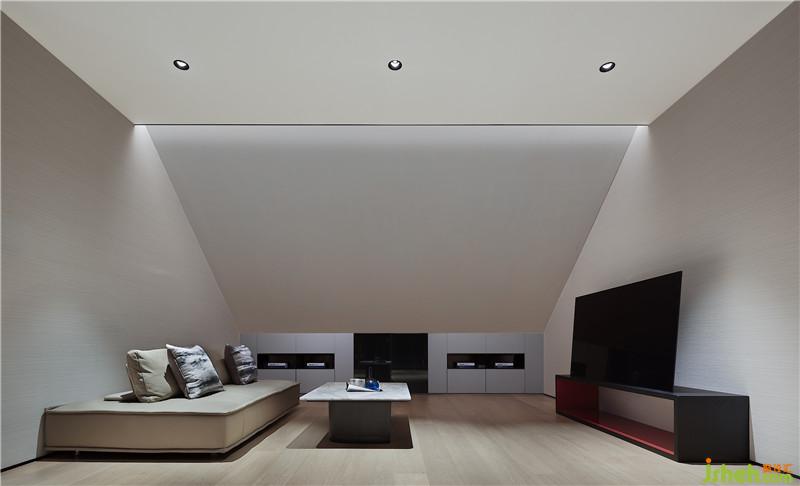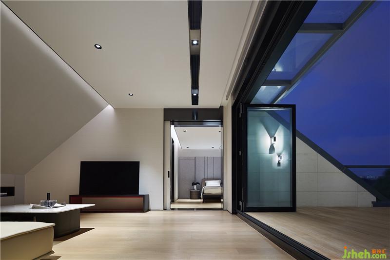 三樓設(shè)有書房、客廳、客臥、露臺(tái)及榻榻米等區(qū)域,注重賦予其更多靈活可塑性,也為未來生活的后續(xù)需求留有發(fā)揮余地。露臺(tái)與客廳開放互聯(lián),切面視覺讓空間框架彰顯趣味。斜頂開設(shè)天窗,以柔和方式留住適宜的照度,使書房更顯寧靜、祥和之氣。