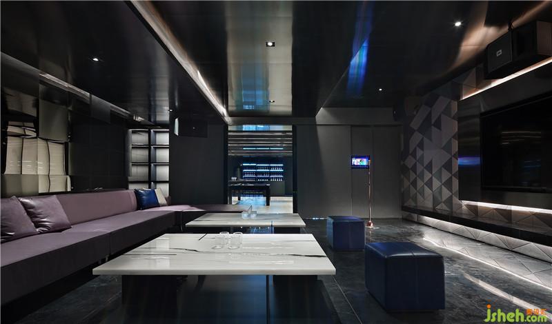 KTV室、影音室宛如魔幻黑盒子,頂面延用映射且又對(duì)燈光、層次予以重構(gòu),立面則選用三種深淺有別、自由拼接的幾何形壁布硬包,動(dòng)感炫酷格調(diào)頓出。