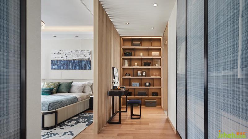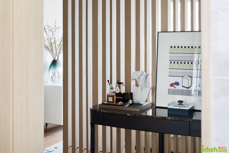 透過木格柵,主臥亦可一窺衣帽間的風采。展示性與功能性兼并的衣帽間設(shè)立于走廊盡頭,室內(nèi)設(shè)計師在不經(jīng)意的筆觸中,將低調(diào)奢華的高貴感勾勒而出。