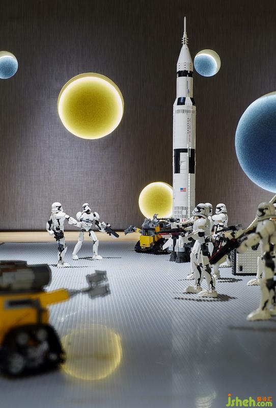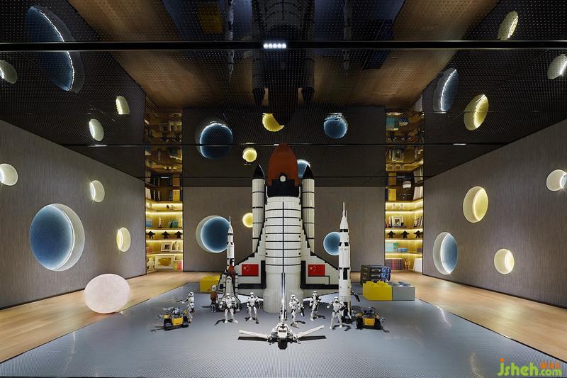 夾層內(nèi)追求沉浸感的營(yíng)造,墻面設(shè)置大小各異、高低起伏的球體形態(tài),加上頂端不銹鋼沖孔板的映射,引導(dǎo)孩童在虛實(shí)交織中去探索神奇的星球與未來(lái)。