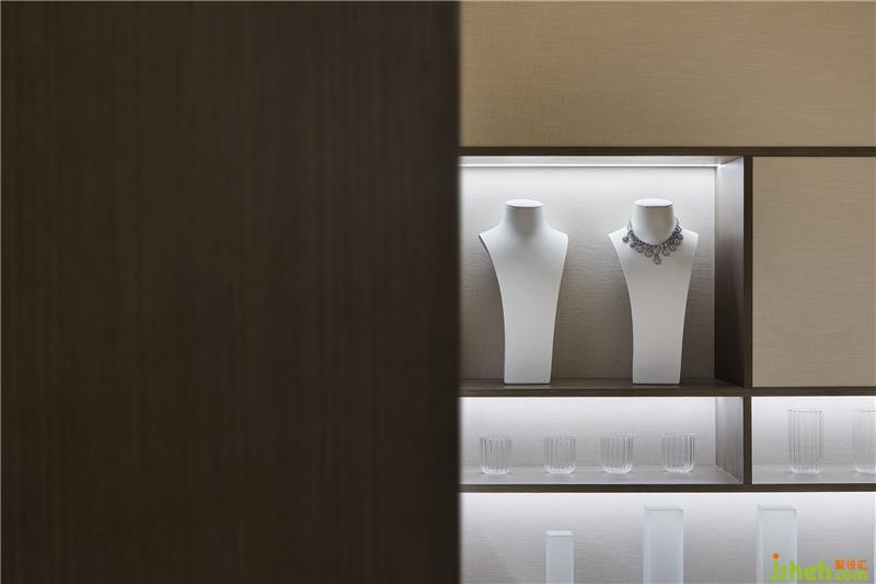 為了增加商業(yè)互動(dòng)性,B1夾層設(shè)置水晶飾品手工體驗(yàn)區(qū)及珍品展示區(qū)。專業(yè)的道具既是見證水晶飾品制作全過程的DIY工具,又可作為墻面及桌面裝置充實(shí)工藝調(diào)性。