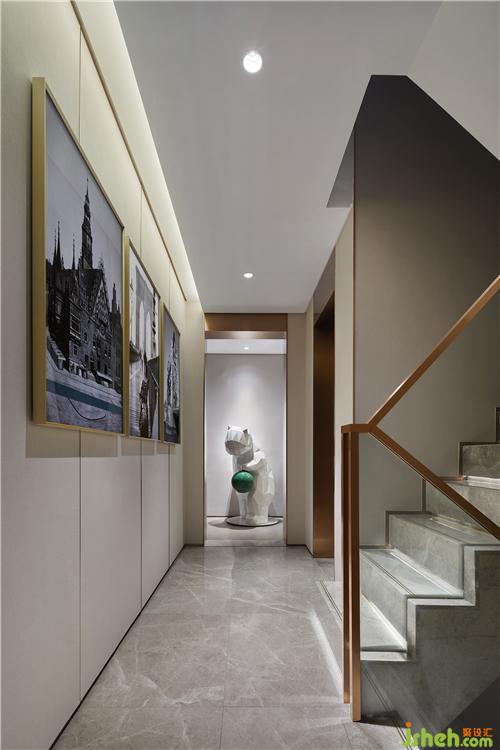 生活區(qū)延續(xù)樓下商業(yè)空間的設(shè)計(jì)手法,在材料類型、質(zhì)感、色彩等選擇上,注重融合統(tǒng)一,著力打造更加舒適與溫馨的憩息之地,這也是對(duì)一貫的克制平衡之道的遵循與踐行。穿過彌散布拉格風(fēng)景人文氣息的藝術(shù)走廊,即可進(jìn)入家庭成員的臥室。