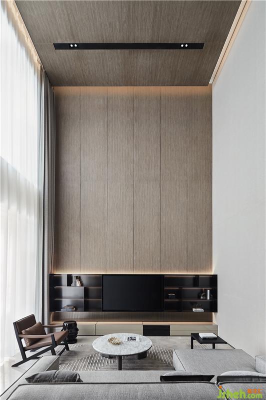 踏入一層即可見闊綽的布局,6.2米的挑高設置,搭配大面落地景觀窗,尊貴尺度以及舒適格調不彰自顯。延伸感、燈光、材質、形態(tài)過渡層面都經過精心拿捏,增添其細節(jié)之處的魅力。樣板房設計
